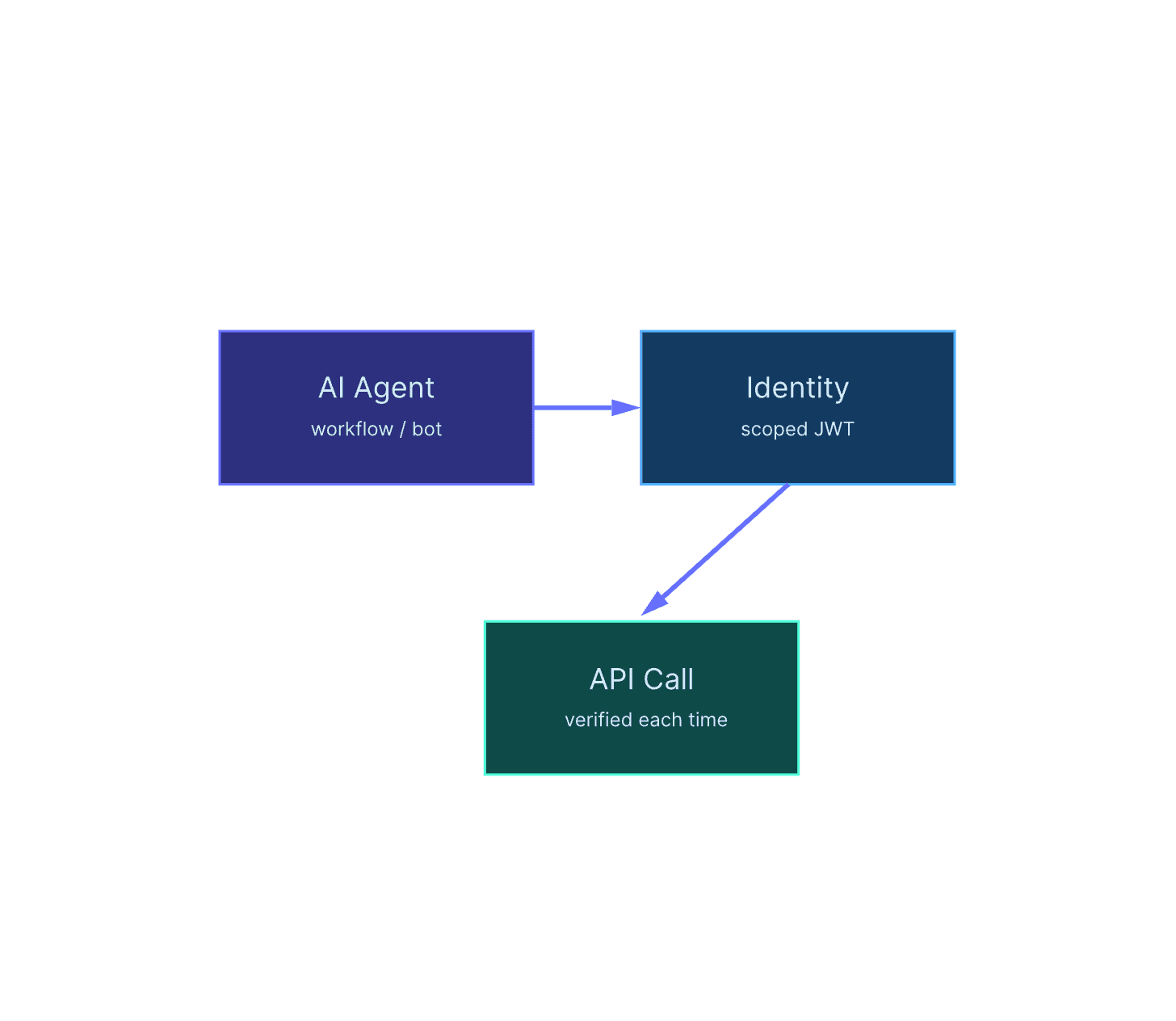 No API keys, token-bound short-lived JWTs.